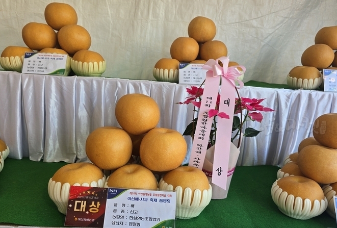 이번 배 품평회에서는 대상 염철형(신고) 조합원, 최우수상 이기형(신고) 조합원, 우수상 이선휘(신고)·염관돈(그린시스)조합원이 각각 수상했고, 장려상에는 이연진(신고)·이병한(수정)조합원, 대과상 박상균(신고) 조원합이 각각 수상했다. 또한 사과 품평회에서는 최우수상 김유경(부사) 조합원, 우수상 윤윤탁(감홍) 조합원, 장려상 송기문(부사)·권오형(루비에스)조합원, 대과상 전옥란(부사) 조합원이 각각 수상했다.