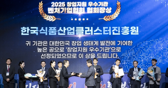 농림축산식품부 산하 공공기관인 한국식품산업클러스터진흥원(이사장 김덕호)이 (사)벤처기업협회가 주관하는 ‘2025 대한민국 창업지원 우수기관’에 선정되는 쾌거를 이루었다.