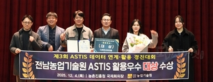 전라남도농업기술원(원장 김행란)은 농촌진흥청이 주관한 ‘제3회 ASTIS 활용 경진대회’에서 대상을 수상했다고 8일 밝혔다. ASTIS(농업과학기술정보서비스)는 농업인이 과학영농, 교육훈련, 상담 등 필요한 정보를 쉽고 빠르게 찾아볼 수 있도록 농촌진흥청이 구축한 시스템으로, 지방농촌지도기관의 디지털 지도서비스 강화를 위해 전국적으로 활용되고 있다. 이번 경진대회는 농촌지도 서비스의 디지털 전환과 과학영농 기반의 기술보급 효율화를 위해 우수사례를 발굴하고 활용도를 높이기 위해 전국 광역시·도 및 시·군이 참여한 가운데 개최됐다. 전남농업기술원은 올해 ASTIS를 활용해 22만 6,369건의 농업기술 정보를 제공하고, 3만 5,660명의 농업인이 서비스를 이용하는 성과를 거두며 전국 최고 수준의 실적을 인정받아 최우수기관으로 선정됐다. 특히 ‘미생물-키오스크-ASTIS 연계 모델’을 도내 시·군으로 확산하고, 토양검정·미생물 배양·농작물 안전 분석 등 21만 2,983건의 과학영농 서비스를 제공함으로써 농업인들이 필요로 하는 기술을 신속하게 제공한 점이 높은 평가를 받았다. 또한 ASTIS 상담컨설팅방을 활용한 농업인 상담이 전년 1,791건에서 5,068건으