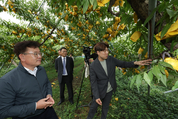 농촌진흥청(청장 이승돈) 국립원예특작과학원 원예작물부 김대현 부장은 9월 18일 경북 상주시에 있는 ㈜한국포도수출연합회를 찾아 포도 수출 상황을 점검하고, 우리 포도 해외 홍보 사업 등 협업 방안을 논의했다. ㈜한국포도수출연합회는 107개 생산자 법인과 125개 수출업체가 참여하는 포도 수출 통합 조직이다. 고품질 포도 생산지 발굴과 새로운 포도 수출 상품 개발, 우리 포도 품종의 해외 홍보 사업 등을 활발히 추진하고 있다. 이날 만남에서 ㈜한국포도수출연합회 이승희 회장은 수출 포도의 품질 균일화 기술, 고품질 포도 수출 시장 개척, 출하기 분산을 위한 장기 저장 기술 등 현장에서 필요로 하는 기술과 홍보 지원 등을 요청했다. 이에 김대현 부장은 ‘규격 포도 생산을 위한 과수원 관리 요령’, ‘포도 장기 저장 기술’ 등 농가 순회 교육과 관련 교재 배부에 적극 협력하기로 했다. 아울러 고품질 수출 상품 생산지 선정 사업에 전문가를 참여시키겠다고 덧붙였다. 김 부장은 “㈜한국포도수출연합회와 적극적으로 소통·협업해 포도 수출 현장에서 발생하는 기술적인 문제 해결에 최선을 다하겠다.”라며 “농촌진흥청 개발 품종의 해외 홍보에도 힘을 보태 한국 포도에 대한 신뢰성을