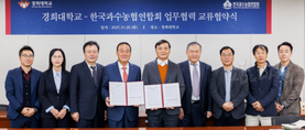 한국과수농협연합회(회장 박철선)와 경희대학교 경영대학원(원장 강재식)은 연구개발과 우수 인력 양성을 위한 산학 공동협력 업무협약(MOU)을 체결하고 현장 수요 기반의 교육·연구·자문 협력을 본격화한다. 협약식은 2025년 10월 28일(화) 오전 11시, 경희대학교 경영대학원에서 강재식 원장, 박철선 회장, 최주철 주임교수, 윤성두 교수, 박연순 전무 등이 참석한 가운데 개최됐다. 이번 협약은 인력 교류, 학술정보 상호교류, 교육협력 및 연구 과제의 공동 수행을 통해 산학 협력체계를 공고히 하고 양 기관의 상호 발전을 도모하는 것을 목적으로 한다. 교류와 협력은 호혜평등의 원칙을 따르며, 중요사항은 상호 합의로 별도 정하고 일반사항은 각 기관의 제반 규정을 적용한다. 협력 범위에는 MBA 등 교육프로그램의 공동 연구·개발과 공동 운영·홍보, 교육·연구 분야 상호교류, 산학협력 기반의 공동 연구 및 관련 사업 공동 기획·수행이 포함된다. 또한 연합회 및 소속 회원사 임직원의 석사과정 진학 지원, 회원사 요청 시 세무상담·경영자문 제공(비용 수반 컨설팅은 최소 비용 지원), 경영대학원 교육과정 정보의 적극 홍보를 추진한다. 상호교류 활성화를 위해 양