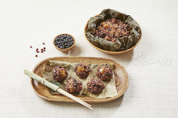 재 료(2인분) 주재료 찹쌀(1컵), 멥쌀(1컵), 검은콩(¼컵), 팥(⅓컵), 수수(¼컵), 차조(¼컵), 연잎(2장), 깐밤(3알) 부재료 소금(⅓t) 조리 방법 1. 찹쌀, 멥쌀은 잠길 정도의 물을 부어 30분 이상 불리고, 검은콩, 팥은 각각 물을 넉넉히 부어 반나절 이상 불린다. 2. 냄비에 불린 팥과 잠길 정도의 물을 넣어 끓어 오르면 물만 따라 버리고 체에 밭친다. 3. 전기밥솥에 연잎을 제외한 재료를 넣고 재료(⅔분량)의 물과 소금(⅓t)을 넣어 취사버튼을 누른다. 4. 밥이 완성되면 주걱으로 살살 섞은 뒤 연잎 위에 올려 감싸고 김오른 찜기에 20분간 찐다. 5. 남은 밥은 주먹밥을 만들어 곁들인다. Tip 검은콩 대신 보리나 다른 곡물을 넣어도 된다. 밥솥에 연잎을 깔고 밥을 지으면 따로 찌지 않아도 된다.