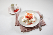 재 료(2인분) 주재료 딸기(9개), 백설기(1개=290g) 부재료 설탕(4T), 크림치즈(1/2컵), 플레인요거트(11/4컵), 다진 호두(1T) 조리 방법 1. 딸기는 납작하게 썬다. 2. 냄비에 딸기(2/3 분량)와 설탕(3T), 물(5T)을 넣고 뚜껑을 덮어 중간 불로 4분간 조린다. 3. 조린 딸기즙을 체에 내려 딸기시럽을 만든다. 4. 크림치즈에 설탕(1T), 플레인요거트를 섞어 크림소스를 만든다. 5. 백설기는 랩을 씌워 전자레인지에 1분간 데운다. 6. 따뜻한 백설기 위에 크림소스와 딸기시럽, 다진 호두를 뿌리고 납작하게 썬 딸기를 얹는다. 단체급식적용법 ▶ 컵에 떡과 소스를 층층이 쌓아 티라미수처럼 만들어도 좋다. ▶ 백설기 대신 호떡 빵, 쌀 카스텔라, 쌀 머핀 등을 사용하면 식감이 더욱 부드럽다.